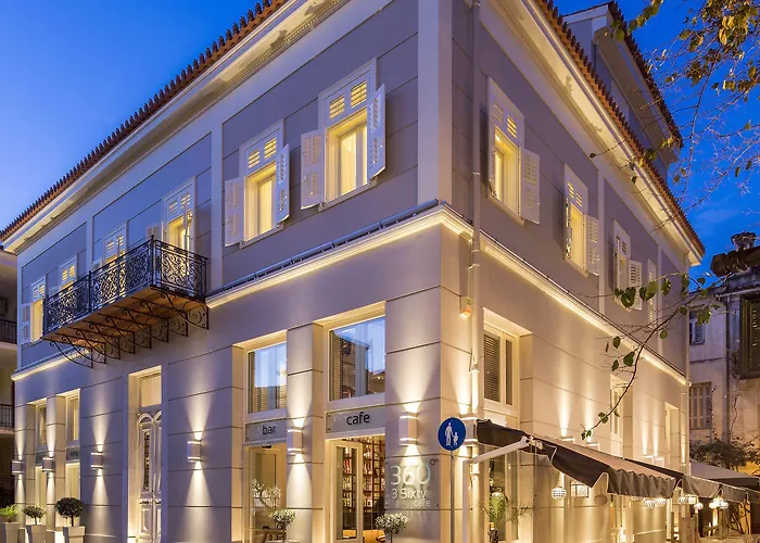 O 3 Sixty Hotel & Suites Náuplia estiloso de 4 estrelas está situado no distrito Nafplio Old Town, a uma distância de 1.1 km da Fortaleza de Palamidi, e dispõe do museu arqueológico. Com uma localização perto da Igreja de Agios Spyridonas, este hotel de Náuplia tem 7 quartos, bem como uma área de lobby e restaurante.